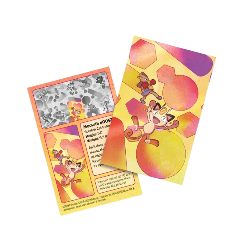 A Pokémon art card showing the art from this Mini Tin—you can collect and combine all 10!